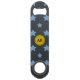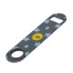 Personalised monogram design with seamless dark blue pattern with stars; with round golden yellow label for custom monogram