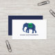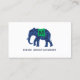 A blue elephant with a lively pattern and green blanket adds a global vibe to this boho-chic business card. Update the initial with your own. This double-sided card provides plenty of space on the backside for your contact info and details. Design © 1201AM Design Studio