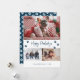 Custom blue photo happy pawlidays cards featuring three photos with a hand-lettered title on the front and blue background with falling snow and paw prints at the back. Easily personalise these blue dog Christmas photo cards with your images, a family name and the year. This cute Christmas card can be turned into any colour using the customisation tool.