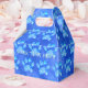 Blue paw print pattern. Custom party favour boxes for treats and gifts. Edit text to customise. Blue watercolor background.