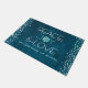 “Peace, joy & love.” A fun, playful, light turquoise and white snowflake illustration and modern, sans serif typography on a rich, teal turquoise blue marble background help you usher in the holiday season. White and light turquoise confetti dots on the sides complete the look. Enhance your entryway with this stylish and unique custom personalized name Christmas or Hanukkah welcome mat. Personalize with your name, other message, or leave blank. Matching cards, envelopes, stickers, tote bags, wrapping paper, serving trays, home décor, and more are also available. What an entertaining way to celebrate this festive season and welcome all who enter your abode!