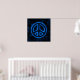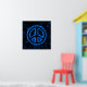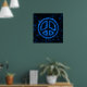 Black poster with a blue peace sign.
