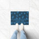 Random peace sign pattern doormat in blue with editable text field. Customise with up to 20 letters, numerals or symbols.