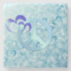 Shades of blue hearts and peace sign design.