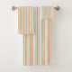 Lovely in stripes, a bath towel set in blue, peach and white, the white background can be switched to any colour to match your home bath decor.