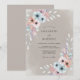 Delicate blooms in soft blues and peachy pinks intertwine with muted greenery. This romantic design evokes a dreamy, ethereal atmosphere, perfect for a whimsical celebration.