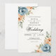 Delicate blossoms in muted blue and warm peach hues frame this elegant design. A gentle, romantic aesthetic perfect for a sophisticated union. The leafy accents add a touch of natural grace.