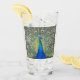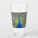 Decorative drinking glass for your favourite cold beverages that features the photo image of a gorgeous, blue Peacock with colourful feather plumage.