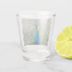 Shot glass that features a photo image of a blue Peacock with colorful feather plumage. A great barware gift idea for peacock collectors!