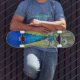 Skateboard design that features the photo image of a colourful, blue Peacock with fantail feathers. An eye-catching design! Select your skateboard size. Complete your skateboard by adding trucks and wheels if desired.