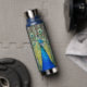 Keep your beverage hot or cold wherever you go with this trendy, vacuum Insulated water bottle that features the photo image of a blue Peacock with colourful feather plumage. Select your water bottle colour and size.