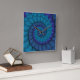 Blue hippie style spiral fractal art pattern created from a photo of a peacock feathers.