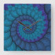 Blue Peacock Fractal Pattern Square Wall Clock