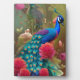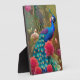 Blue Peacock in Pink Heart Rose Garden Plaque