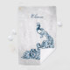 Personalise a unique towel for golfing with a Blue Peacock Personalised Golf Towel. Towel is a visually striking golf gift, featuring a vibrant metallic blue peacock with iridescent feathers shimmer with hues of sapphire blue, and cobalt, creating a bold and luxurious focal point. Set against a grey grunge background, adorning the design are delicate white leaf botanicals, intricately woven around the peacock. These leaves add a touch of elegance and nature-inspired softness, softening the grunge background’s roughness while complementing the peacock’s regal presence. Elegant script lets you add your name or recipients name for a personal gift.