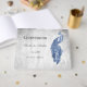 Record the guests to your big day with a Blue Peacock Wedding Day Guestbook. Guestbook design features an elegant peacock against delicate foliage and grunge background. Additional wedding stationery available with this design as well.