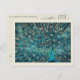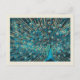 blue peacock with unfold tail postcard