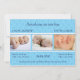 A soft blue floral wallpaper pattern forms the background for this sweet baby announcement perfect for introducing your beautiful twins to the world. Three placeholders framed by a row of white pearls are waiting for your own photos. Just customise each text placeholder for each of your little angels. Available in alternate colours with matching postage and favours.