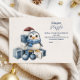 Celebrate a joyful winter baby shower with this charming design featuring a hand-painted penguin in a Santa hat and scarf, surrounded by stacked gift boxes and festive blue ornaments. The soft watercolor style and cool tones create a playful and cosy vibe—perfect for welcoming a baby boy during the holiday season.