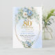Blue Peonies Greenery Minimal Boho 80th Birthday Invitation