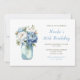 Beautiful birthday party invitation with blue and white peony flowers in a mason jar. Perfect for a birthday party. The words can be changed to suit your own details or requirements