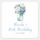 Blue Peonies Mason Jar Birthday Square Sticker