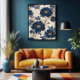 Luxurious floral art with deep navy blue peonies and shining gold details. Delicate branches and foliage create an elegant pattern over a cream background. Inspired by Chinoiserie art, it brings oriental sophistication and visual richness to spaces seeking exclusivity and timeless beauty.