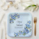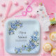 Blue Peony on Blue 9" Square Paper Plate