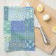 A chic Boho Kitchen Towel or Tea Towel, with a country-style Faux Patchwork of various pretty Periwinkle florals and coordinating Check Gingham patterns in Blue, Green and White. Part of the Posh and Painterly 'Periwinkle Patch' collection.
