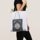 A blue Persian design tote bag with mashallah text on a bigger tote