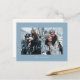 Personalised dusty light blue 2 best friends, weddings or family photos Universal Greetings Postcards featuring a stylish photo collage with 2 customised images, your greetings message in elegant handwritten script font, your name, date, year, message on the back in a modern and simple sans serif font.
