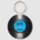 The image of a vinyl-record with custom name and initial, and with the words 'let the music play'