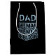 Personalised your own name, "the Man the Myth the Legend" typography design in black and blue, great custom gift bags for men, dad, grandpa, husband, boyfriend on father's day, birthday, anniversary, and any special day.
