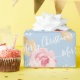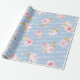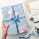Christmas gift wrapping paper feature custom your own white modern "Merry Christmas" script on blue and pink watercolor floral background.