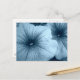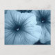 A bright and colourful photograph of two digitally tinted blue petunias in bloom