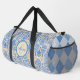 Pack your pickleball gear in this blue pickleball paddle design duffel, with blue argyll side panels. Add your name and monogram initial to the front side for a stylish and on-point fashion sports statement. Makes a great gift for the avid pickler on your gift list.