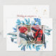 Vibrant colored letters, trees, holly and cancy canes in a cheerful message suitable for a non-religious holiday greeting. I especially liked it on the black background which made the design pop.