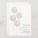 A minimalist balloon themed Gender Reveal party invitation. The watercolor pastel blue, pink and gold balloons read Baby. Personalize by editing the digital or printed invite with your event details.