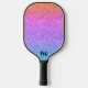 Image of a blue, pink, and orange glitter gradient. Custom monogram text in black.