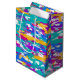 Captivating spin art designed gift bag featuring colourful shades of blue, pinks and yellows. Matching home decor and gift packaging are also available.