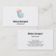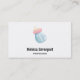 Business cards with a cute image of a light blue baby bottle with a pink rim.