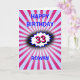The background for this eye-catching birthday card is an explosion in deep pink and pale blue, with a blue-edged burst to emphasise the number. There is a vintage comic retro vibe to the design with crisp bright colours and text. Edit the Happy Birthday greeting on the front, edit the number, change the name, and personalise the message inside as well (currently this reads simply "It's just a number...").
