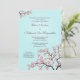 This 5x7 trendy wedding invite has a beautiful pink cherry blossom design on the bottom right and the top left. There is also a pink hummingbird silhouette towards the bottom. In the background, there is a soft aqua blue colour with a faint swirl design at the top and bottom. In the middle, you can easily customise your wedding information. This would be suitable for a spring or summer wedding!
