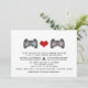 Level up your love story with this Blue Pink Cute Gamer Wedding Invitation, crafted for video gaming couples who live for epic adventures. This gamer theme wedding invitation features a modern layout with video game controllers and a vibrant red heart, symbolising your two-player partnership. Showcasing modern typography, the design highlights the character bride and character groom in a pixel-perfect style, bringing your favourite gaming aesthetic to life. Ideal for gamer wedding stationery, this invitation sets the tone for a fun, unforgettable celebration. Press start on your forever with this dynamic, game-inspired invitation!