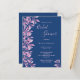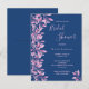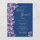 A trendy floral Bridal Shower invitation in blue and pink. A blue background decorated with botanical pink coloured sprigs and foliage. Modern large handlettered script, typography with the text: Bridal Shower. Templates for the bride's name and party details. Pink text.