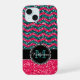 Black and pink glitter chevron pattern phone case. Personalised with your name and monogram.