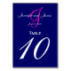 Navy Blue and White and Pink Wedding Table Number Cards with custom tray monogram. Design by Elke Clarke ©. Customise with your bride and groom names, newly weds last name, monogram initial and wedding date. Order one per table with each table number but still receive the bulk discount for total number ordered. Other colours available