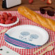 Elegant and classic Nautical Sea Shells Wedding Paper Plates with a pair of simple seashells and an array of stripes in dark navy blue and pink. These nautical beach themed plates can be easily customised with your wedding details. For more customisation options, click on the Customise It button.