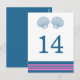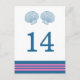 Elegant and classic Nautical Sea Shells Wedding Table Number Postcard with a pair of simple seashells and an array of stripes in dark navy blue and pink. This nautical beach themed table card can be easily customised with your wedding details. For more customisation options, click on the Customise It button.