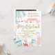 Sweet Alice in onederland first birthday invitation for a baby girl featuring Alices legs, pink flamingo, white rabbit, mad hatters hat and a photo on the back. This girl's Alice in onederland first birthday invitation is ideal for someone looking for a pastel colored invitation design.